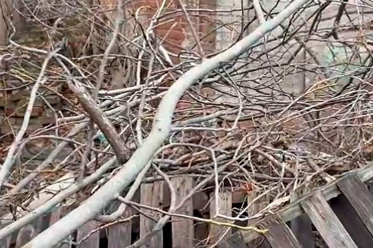 Администрация учебного заведения вынуждена самостоятельно убирать аварийные деревья, чтобы предотвратить падение веток на детей. Покосившийся забор поддерживают палками, а его часть привязана к дереву, чтобы избежать обрушения на тротуар.