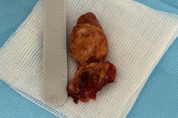 Новообразование развивалось почти год и внешне не вызывало болевых ощущений. Во время вмешательства врачи выявили, что опухоль значительно превышает предполагаемые размеры и тесно связана с нервами, сосудами и сухожилиями ладони. Любое неточное движение могло привести к утрате чувствительности или подвижности кисти.