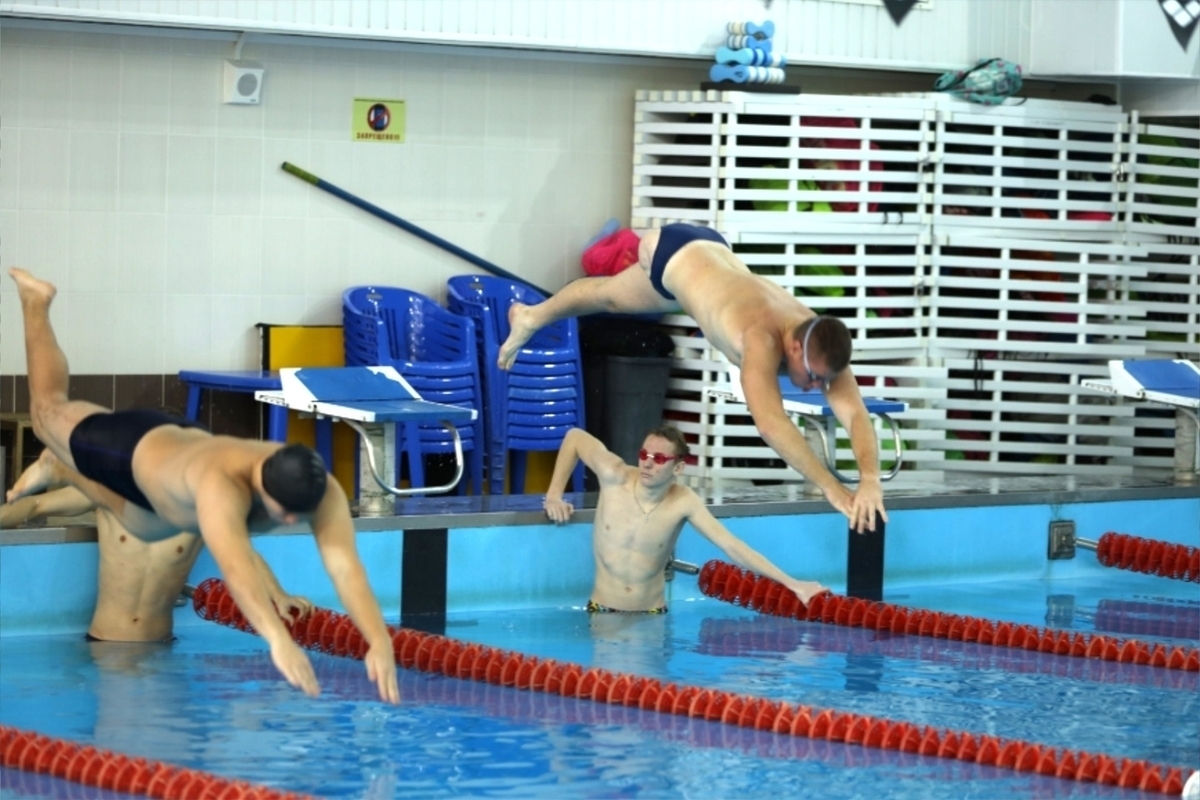Участники соревновались на различных дистанциях. Часть спортсменов выполняла упражнения на специальных тренажёрах, имитирующих плавание.